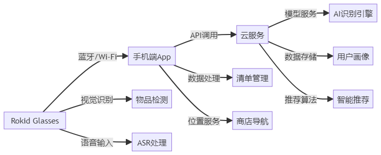 端侧(Rokid Glasses + 手机):负责实时数据采集、基础 AI 推理与用户交互