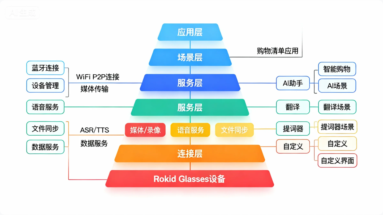 在智能穿戴设备快速发展的今天,AR 眼镜正逐渐成为连接物理世界与数字服务的重要桥梁。本文基于 Rokid CXR-M SDK,设计并实现了一套完整的智能购物清单生成系统。该系统通过 Rokid Glasses 的视觉识别能力,结合 AI 场景定制和自定义 UI 技术,实现了从家居物品识别到智能购物清单生成的全流程闭环。系统核心功能包括:智能冰箱内容识别、物品数量预测、过期食品提醒、个性化购物建议以及 AR 购物导航等。通过蓝牙与 Wi-Fi 双通道通信机制,实现了眼镜端与手机端的高效协同,为用户提供了无缝的购物体验。本文详细阐述了系统架构设计、关键技术实现与优化策略,为 AR 智能零售应用的开发提供了完整的技术参考。
