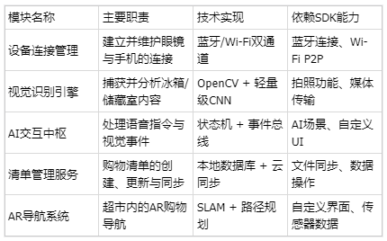 AI 场景协同:通过 AI 助手场景,可实现语音指令控制(如"添加牛奶到购物清单")与视觉识别结果的智能融合
