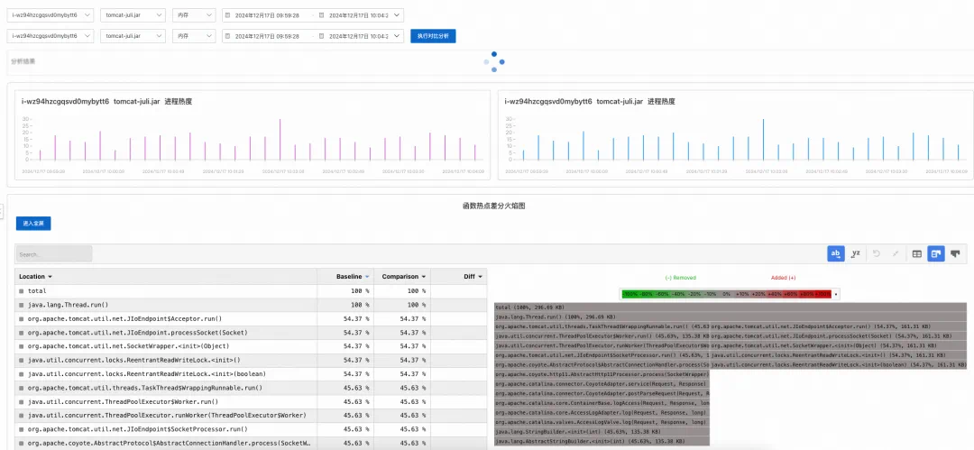 热点对比:允许用户比较不同实例、不同时间点或不同条件下的性能热点变化。