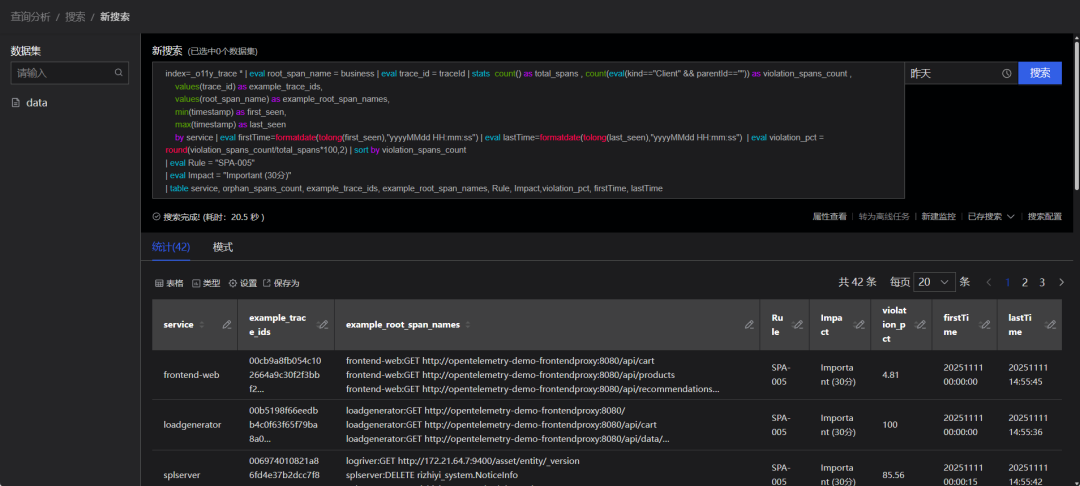 不光对规则是否违反进行计算,还需要获取违反的示例,首次/最后一次违反的时间,以及每个服务违反的比例。