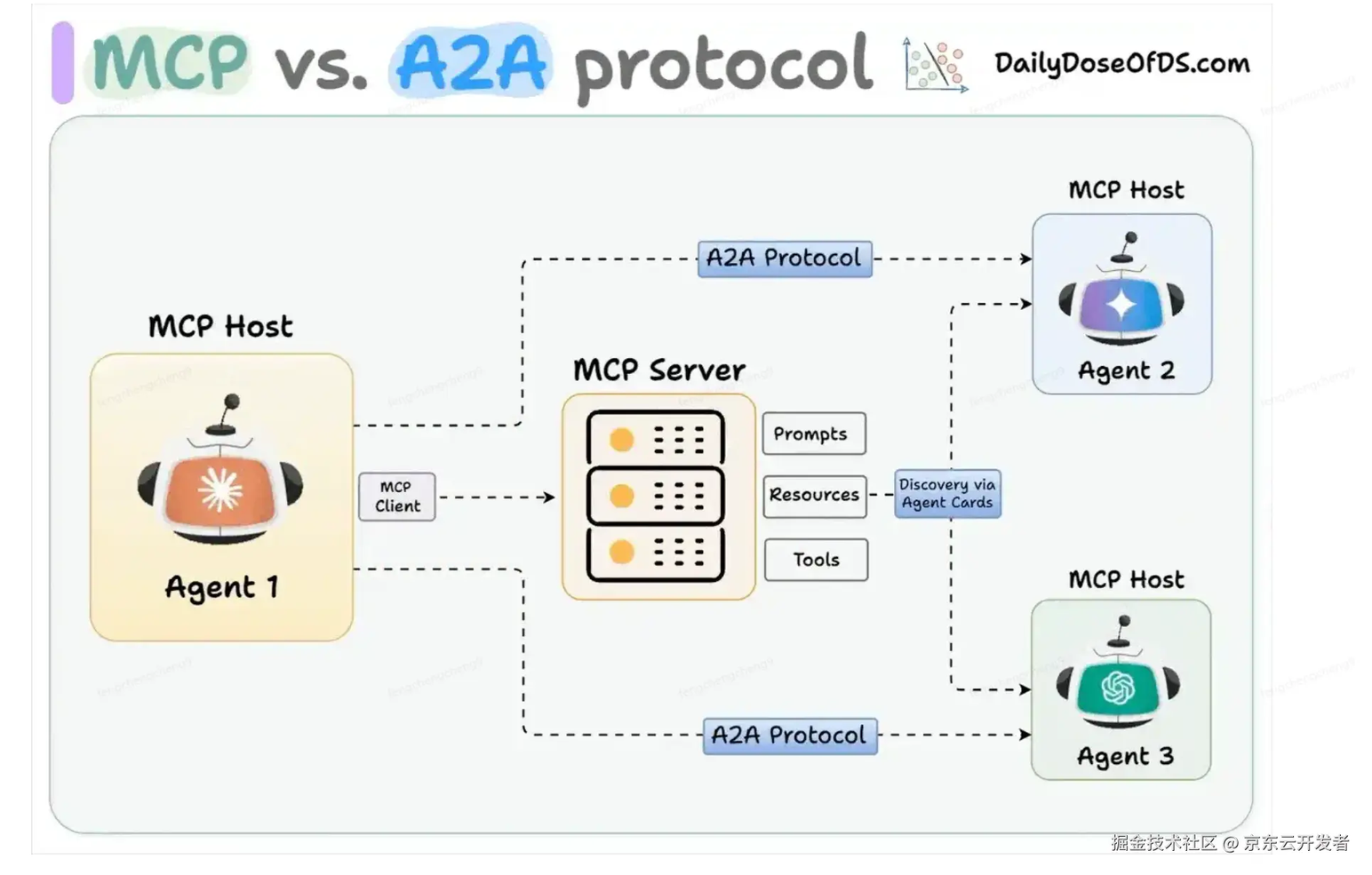 而 A2A 允许代理与其他代理连接并以团队形式协作。