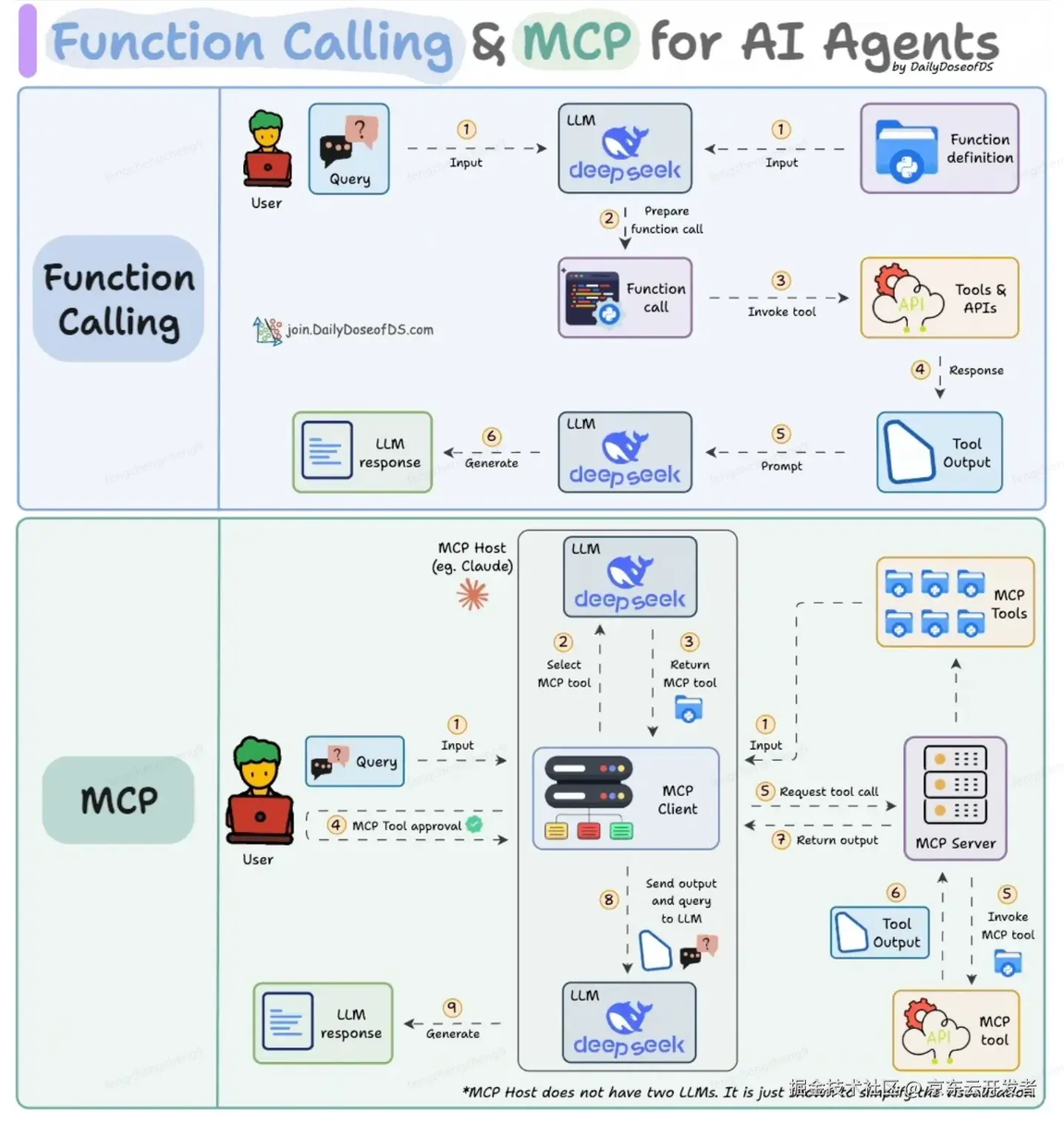 函数调用关注的是模型想要做什么,而 MCP 关注的是如何让工具变得可发现和可用——尤其是跨多个代理、模型或平台。