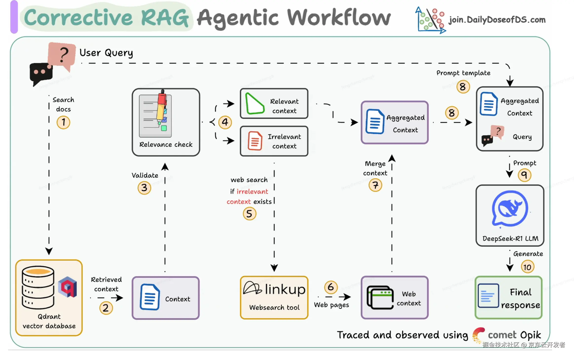 这使得 RAG 更加稳健,因为在每一步中,代理行为都能确保个体结果与最终目标保持一致。