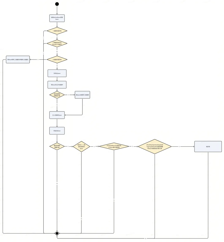 将 doGetBean 和 doCreateBean 的逻辑转换成流程图如下: