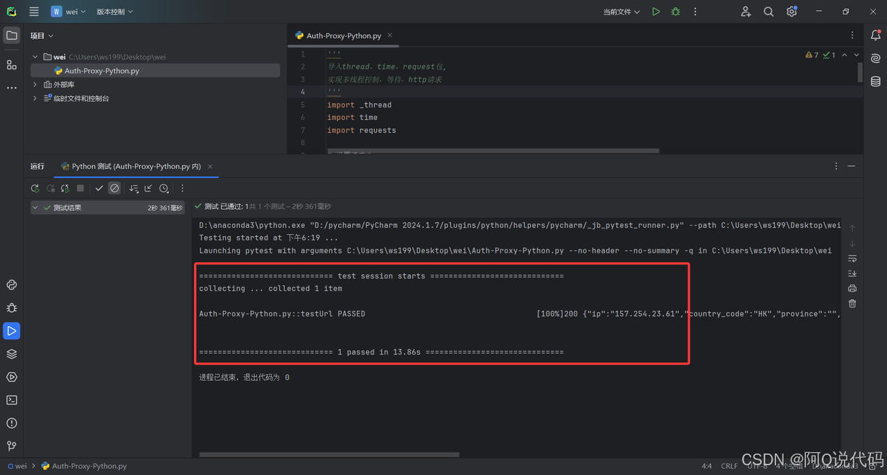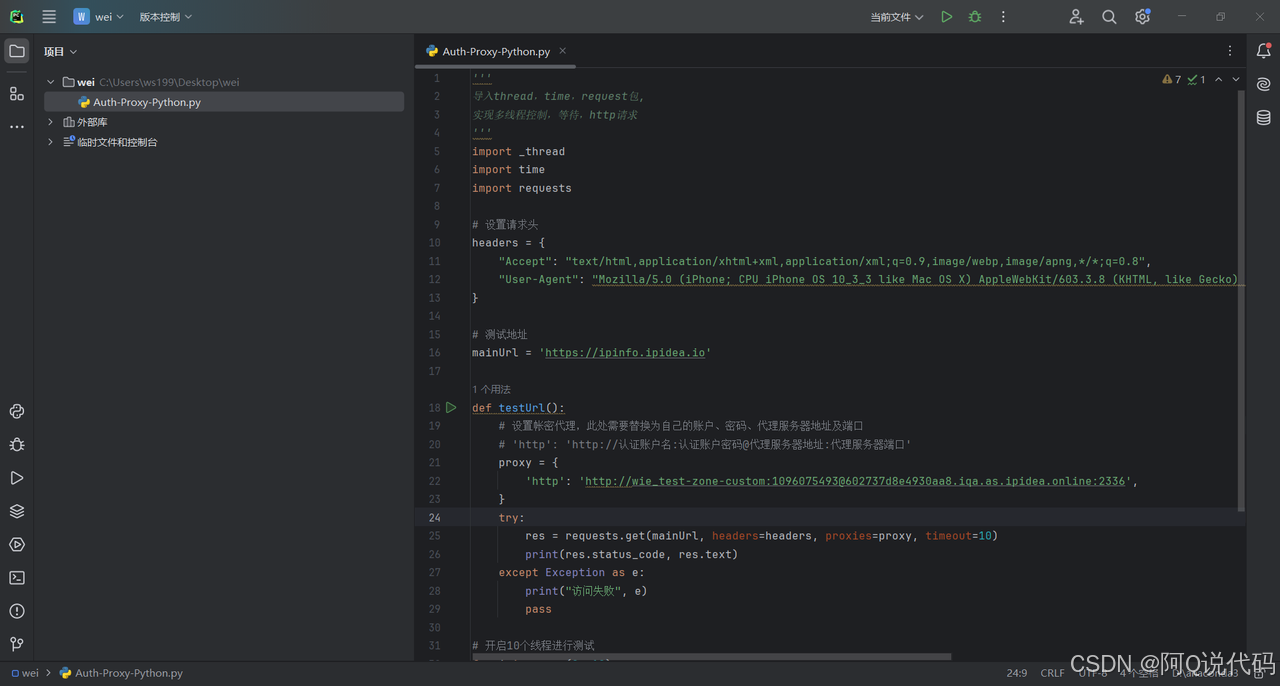 get_ipidea_proxy_from_api() # 提取代理test_proxy(proxy) # 测试代理可用性init_valid_proxy_pool() # 初始化有效代理池
