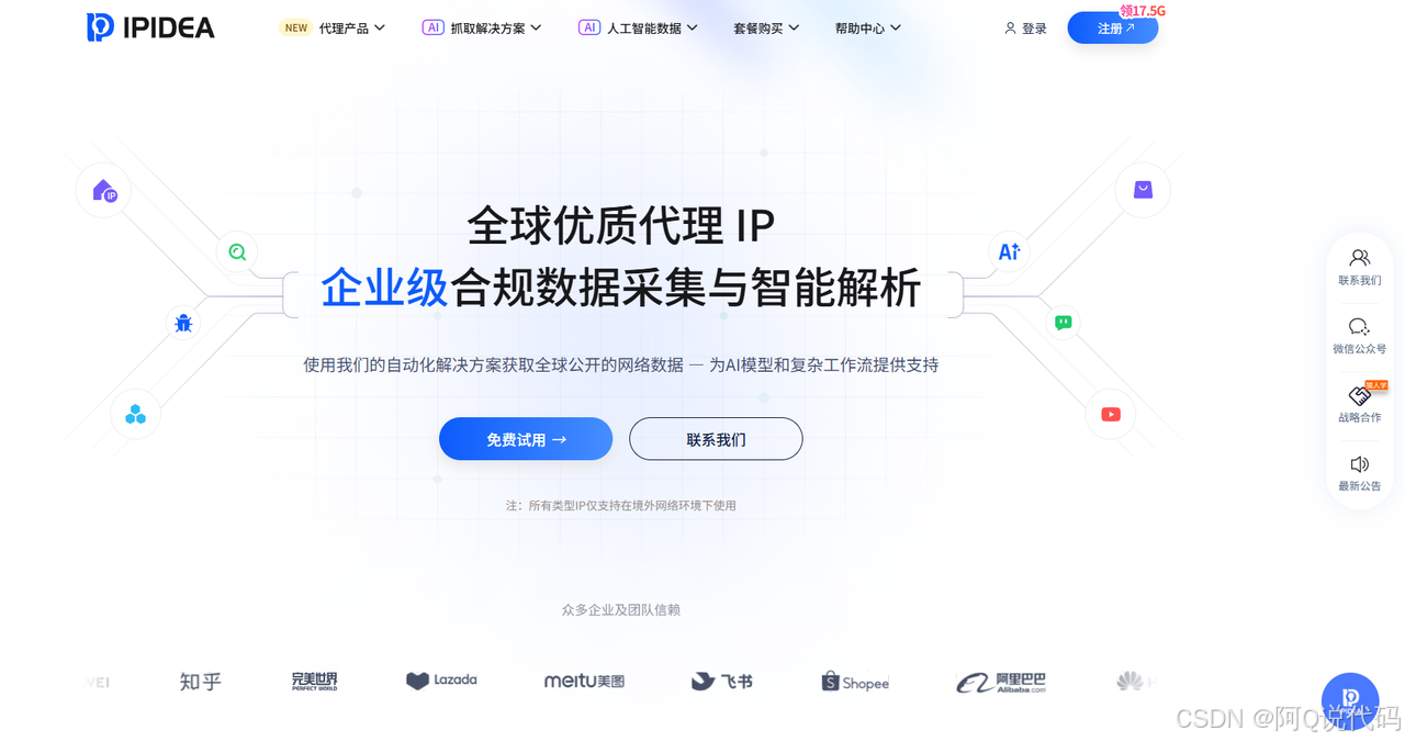 在全球互联网环境中进行数据采集时,常面临网络访问约束、隐私安全保护以及数据格式多样性等挑战。同时,系统还需兼顾高并发处理能力、运行稳定性和业务合规性要求。借助 IPIDEA 提供的全球优质网络服务,能够灵活应对各类网络环境,实现高效稳定的数据获取、隐私安全保护与智能解析,从而高效、稳定地获取全球公开数据,为 AI 模型训练、市场洞察分析及复杂业务流程提供可靠支撑。