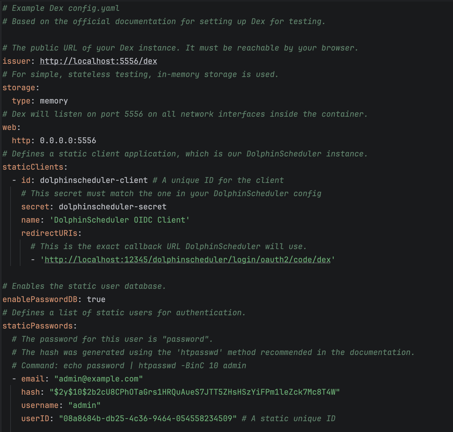 最后,为了方便未来开发和社区推广,我写了详细的文档。包括用 Keycloak 进行本地测试的分步开发指南,还有企业集成的详细配置示例,这些现在都已经是官方 DolphinScheduler 文档的一部分了。