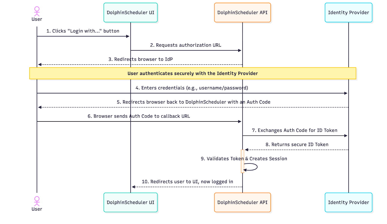 作为我 2025 年谷歌暑期代码计划(Google Summer of Code)的项目成果,我很高兴给大家介绍一个解决方案:全新的通用 OpenID Connect(OIDC)认证机制。它简化并升级了访问 DolphinScheduler 的方式,让 DolphinScheduler 真正契合企业需求。这个实现巧妙地运用了现有的 Nimbus SDK,还精心设计成能与当前数据库架构无缝衔接,保证所有用户都能轻松完成升级。