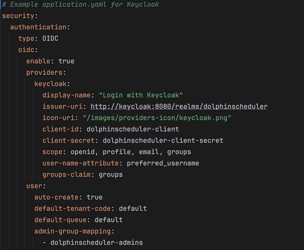集中式身份管理:在企业环境里,管理员能在 Keycloak 或者 Okta 这样的中央身份提供商(IdP)里统一管理所有用户的访问权限。员工入职或者离职的时候,在一处就能给他们开通或者取消 Apache DolphinScheduler 的访问权限,既提升了安全性,又简化了用户生命周期管理。