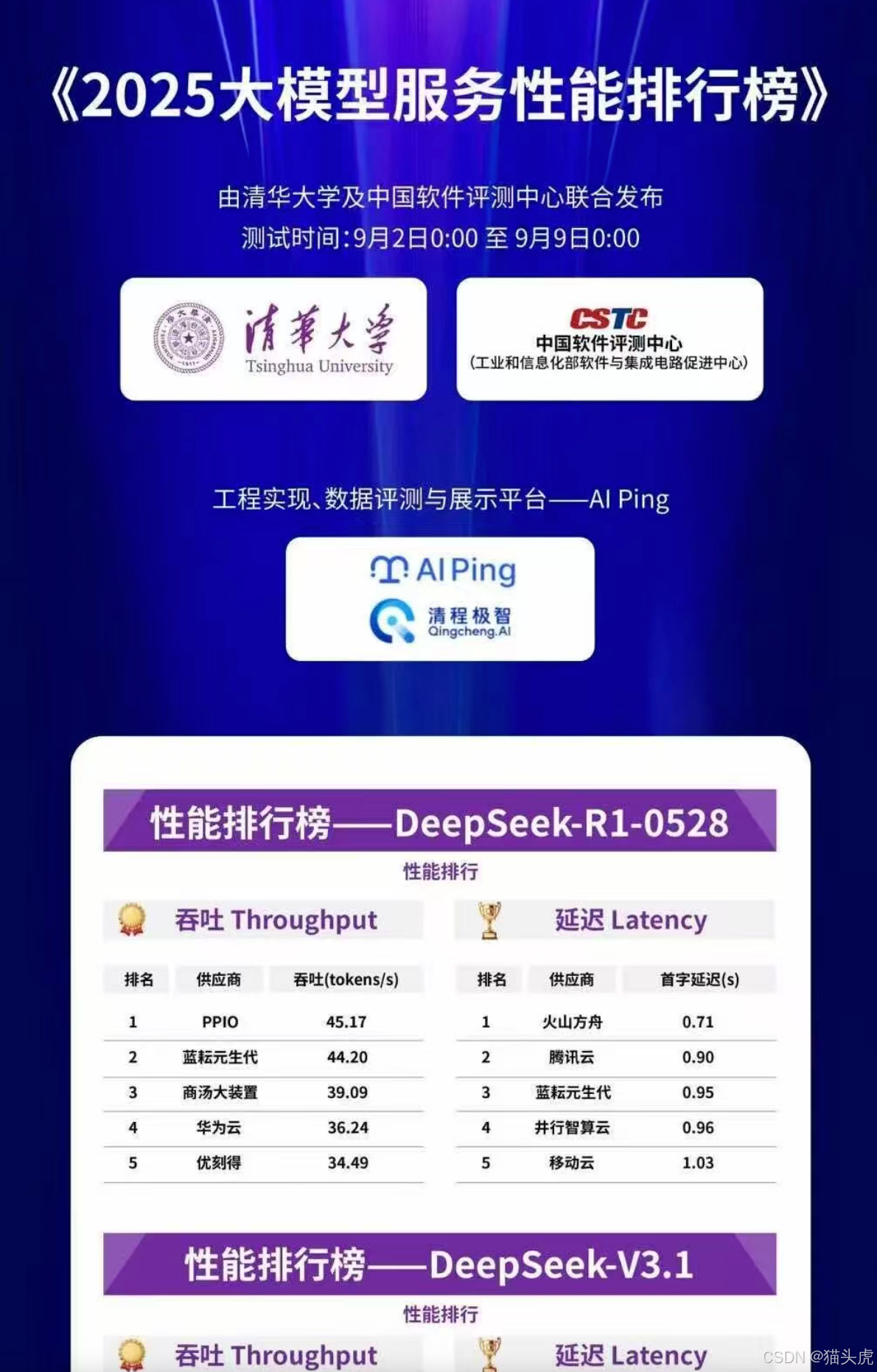 转机出现在 9 月 13 日的 杭州 GOSIM 大会。会上,我了解到由 清华大学和中国软件评测中心 联合发布的 ==《2025 大模型服务性能排行榜》==,而支撑这份榜单的技术平台,正是 AI Ping。抱着试一试的心态,我体验了 AI Ping 的服务,结果让我眼前一亮:它提供的客观评测和详实数据,确实能够为大模型选型提供科学依据,也让我对整个行业的选型方式有了全新的认知。