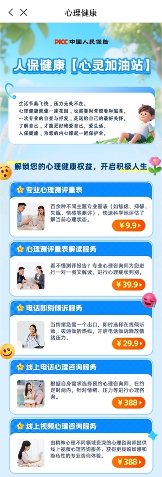 近日,有用户发现,中国人保 APP 在其首页“健康商城”板块中,悄然上线了名为“心灵加油站”的心理健康服务专区。