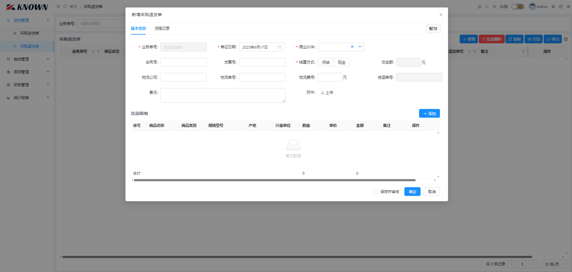 统计报表:包含进货明细表、进退货明细表、销货明细表、销退货明细表。