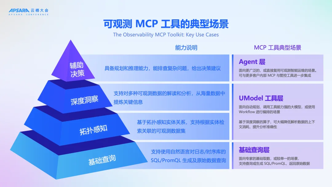 在和客户共同成长的道路上,我们深知,任何黑盒方案都无法长久。因此,我们将 AIOps 的核心能力,通过一个分层的可观测 MCP 工具集全面开放了出来。