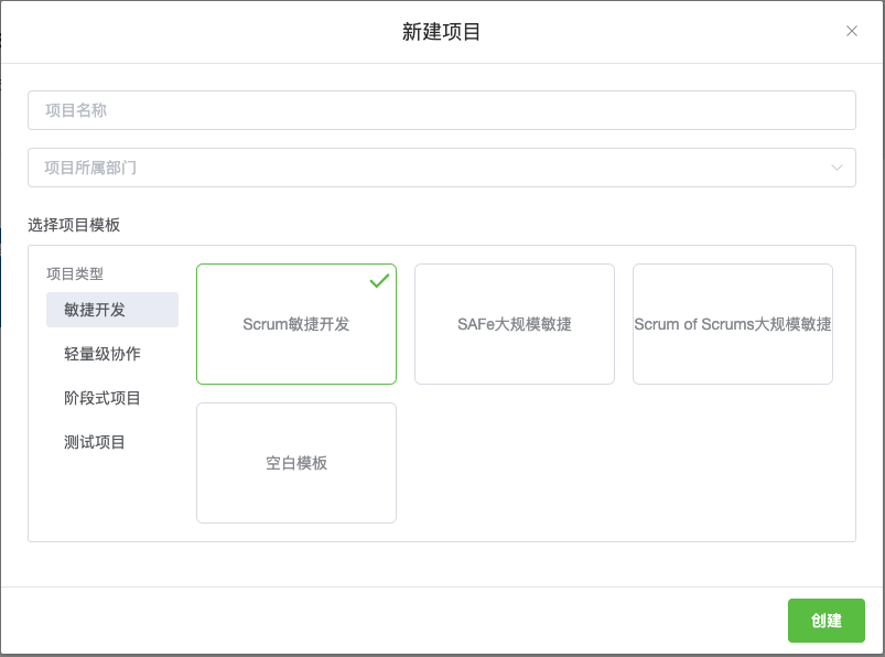场景化项目模板库:无论是敏捷研发、市场活动管理、还是人事招聘,Leangoo 提供了丰富的项目模板。市场部可以用“活动模板”,研发部可以用“Scrum 模板”,大家在同一个平台上用最适合自己的方式工作。