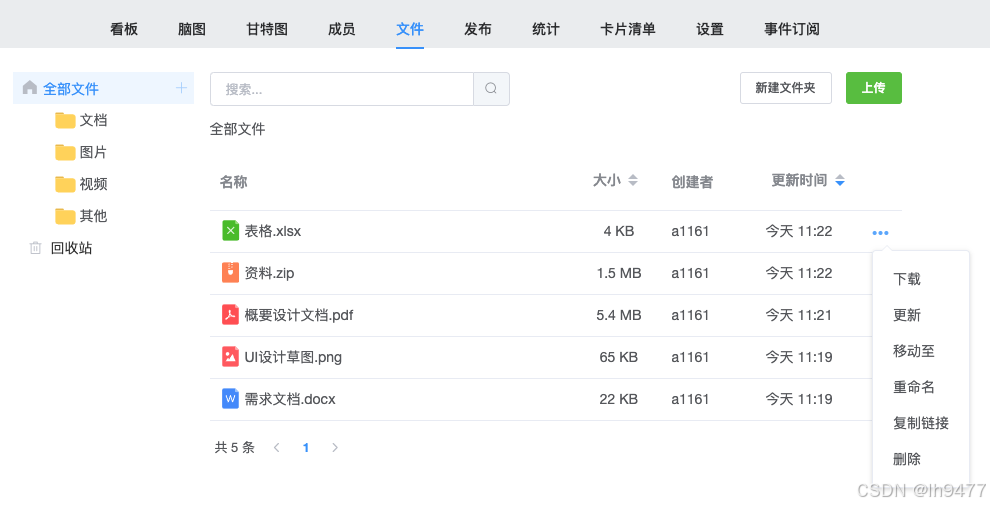项目文件结构化管理:不再需要在聊天记录里翻找文件。你可以直接将需求文档、设计图等附件直接上传到项目中并关联到任务卡片,所有资料跟随任务走,版本清晰,触手可及。